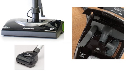 | The “OptiFlow” does exactly what you’d want a superior vacuum cleaner to do – it powerfully sucks up dirt, dust, cat hair, particles and anything else in its path and it does a great job on the edges. I love the long 24-foot power cord that reaches across any room (and quickly retracts), and the really convenient on-off switch at your fingertips on the handle. The vacuum’s handy motorized mini-brush is my new go-to tool for stairways. Nice selection of tools. (My only misgiving is about the durability of the tool area’s plastic cover hinges). Canisters can have minds of their own, but the Panasonic follows me around remarkably well without getting all twisted up, thanks to its 360 degree nozzle feature. It’s quite light to tug along or carry. Easy on the ears too – it’s so quiet it barely disturbs our sleeping cat. | |